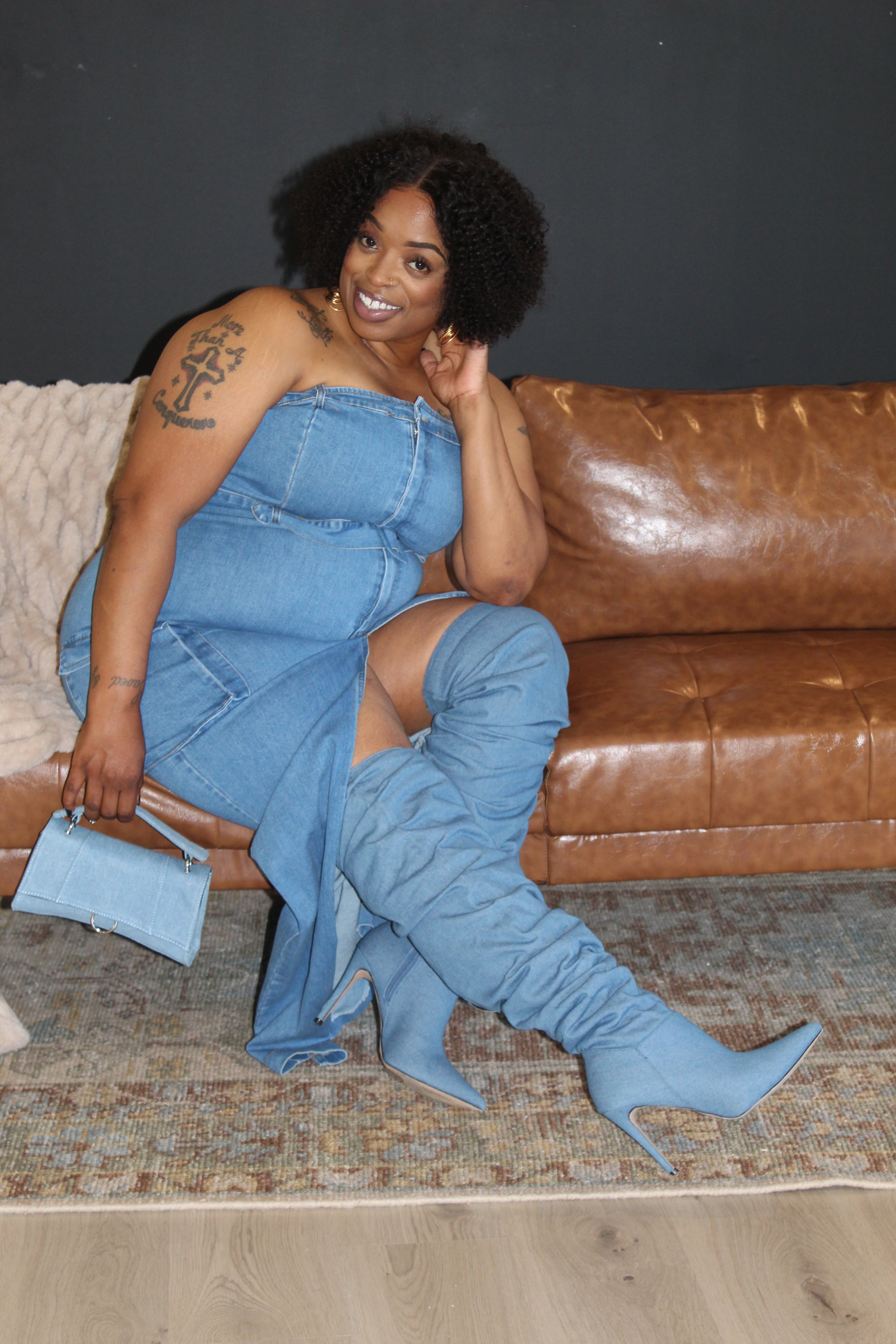 Priscilla Denim Tube Plus Maxi Dress